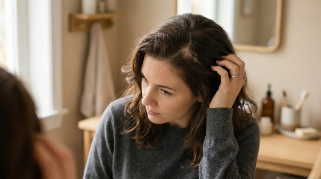 Los cambios hormonales, como los que ocurren durante el embarazo, la menopausia o por alteraciones en la tiroides, también pueden generar caída capilar. A esto se suma el uso excesivo de tintes, alisados y tratamientos químicos que, con el tiempo, debilitan la fibra capilar. Además, problemas en el cuero cabelludo como caspa, exceso de grasa o inflamación pueden impedir el crecimiento normal del cabello.
